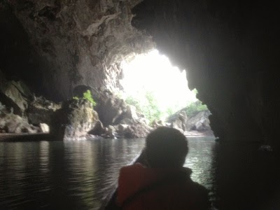 More like a tunnel really with a 7 kilometre river running through it. We hired a boat and driver (complete with mega head torch) and were soon pop popping our way down a pitch black underground river. About a third of the way in, we were dropped off on a beach and walked up through a load of massive stalagmites & tites that were lit up very nicely by generous donations from the French government, the dept of the Rhone Alps and the New Zealand 'Lets help Laos society' or something like that.